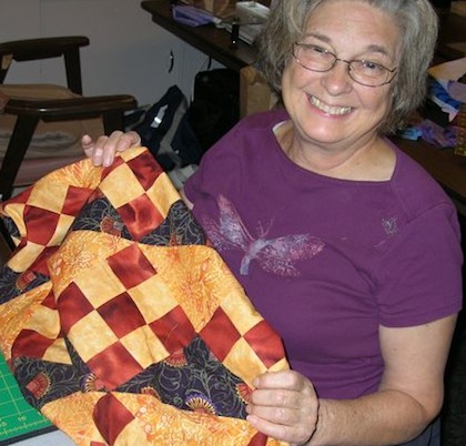 Marge finished her bargello top.Erika was tickled pink to finish the 10th-anniversary quilt for her son, just in time for his 13th anniversary!